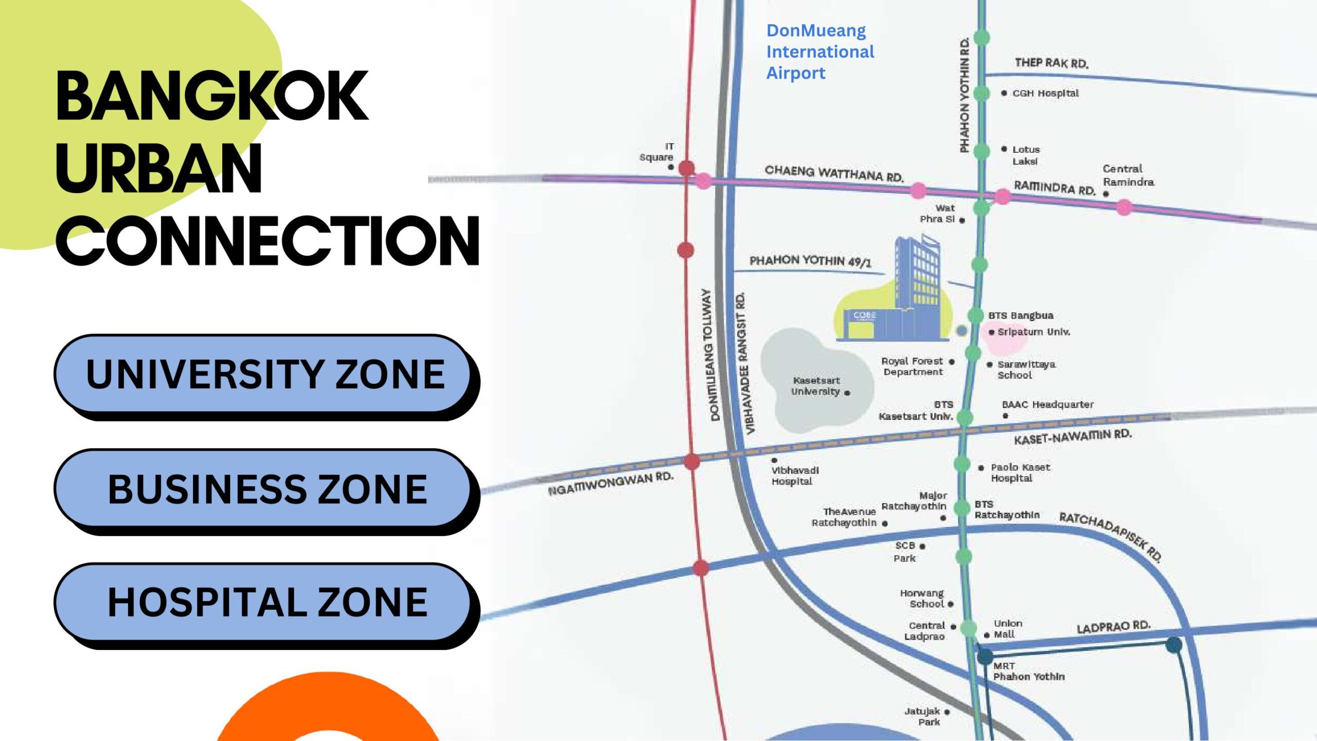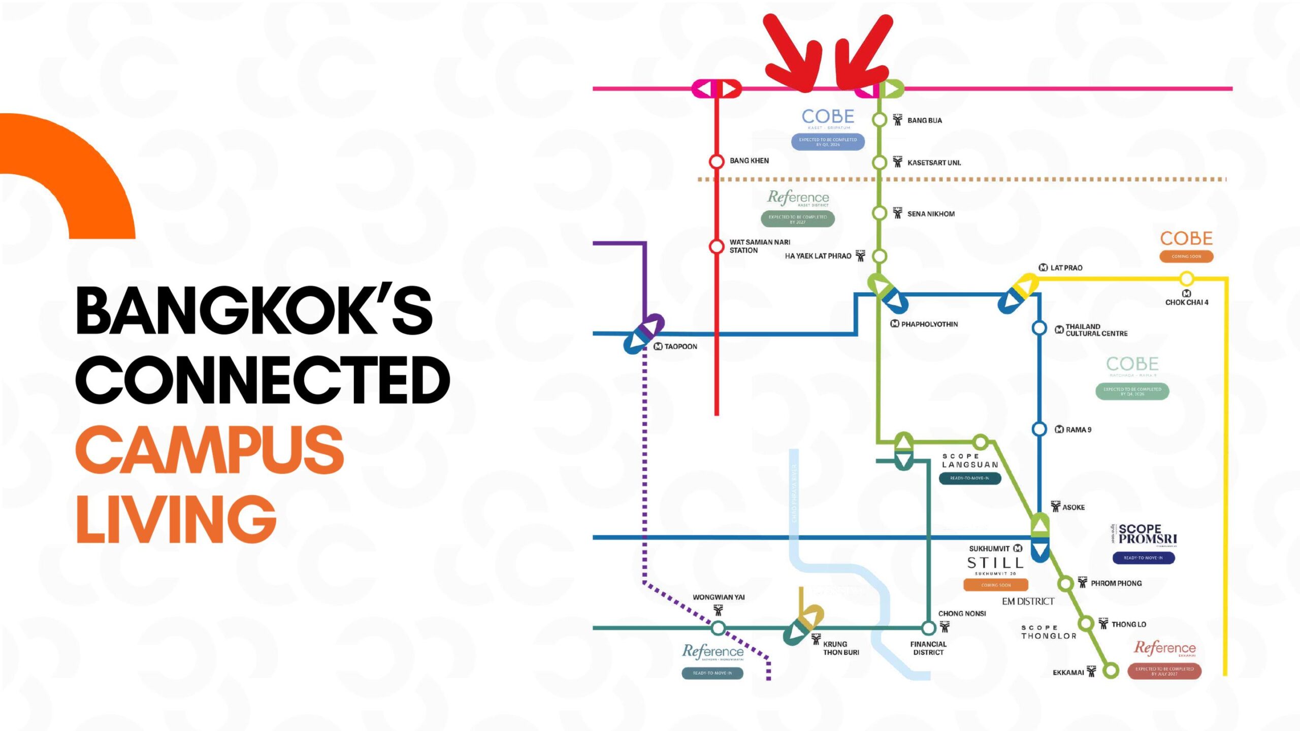 ไม่ต้องกังวลเรื่องรถติด ไม่ต้องเสียเวลาหาที่จอด ชีวิตใน COBE คือ “ชีวิต 0 เมตร” ที่ทุกอย่างอยู่ในระยะเดินถึง ไม่ว่าจะเป็น BTS ร้านอาหาร ห้างสรรพสินค้า ไปจนถึงมหาวิทยาลัยชั้นนำ