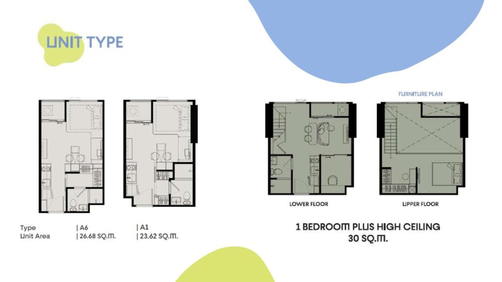 🔥 1 Bedroom High Ceiling (ขายดีที่สุด!) | ขนาด 23–46 ตร.ม. · Duplex · เพดานสูง 4.7 เมตร