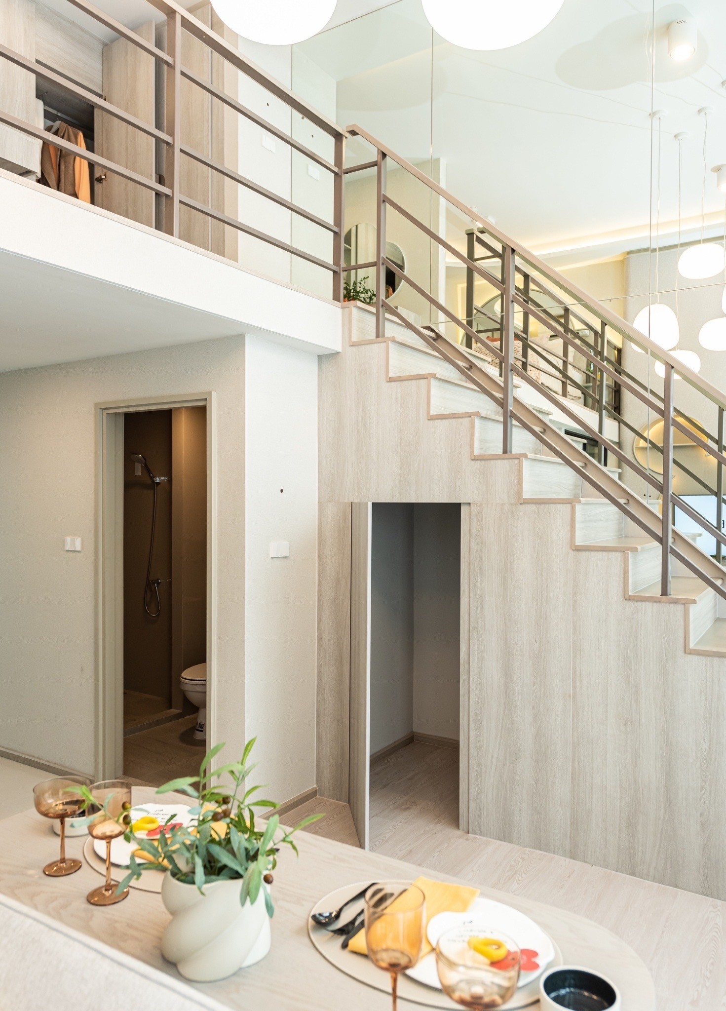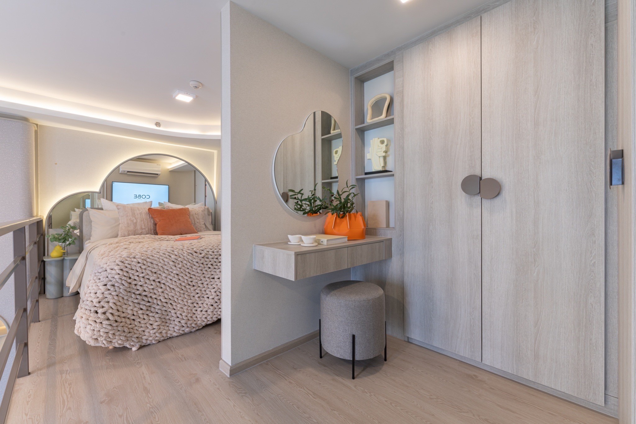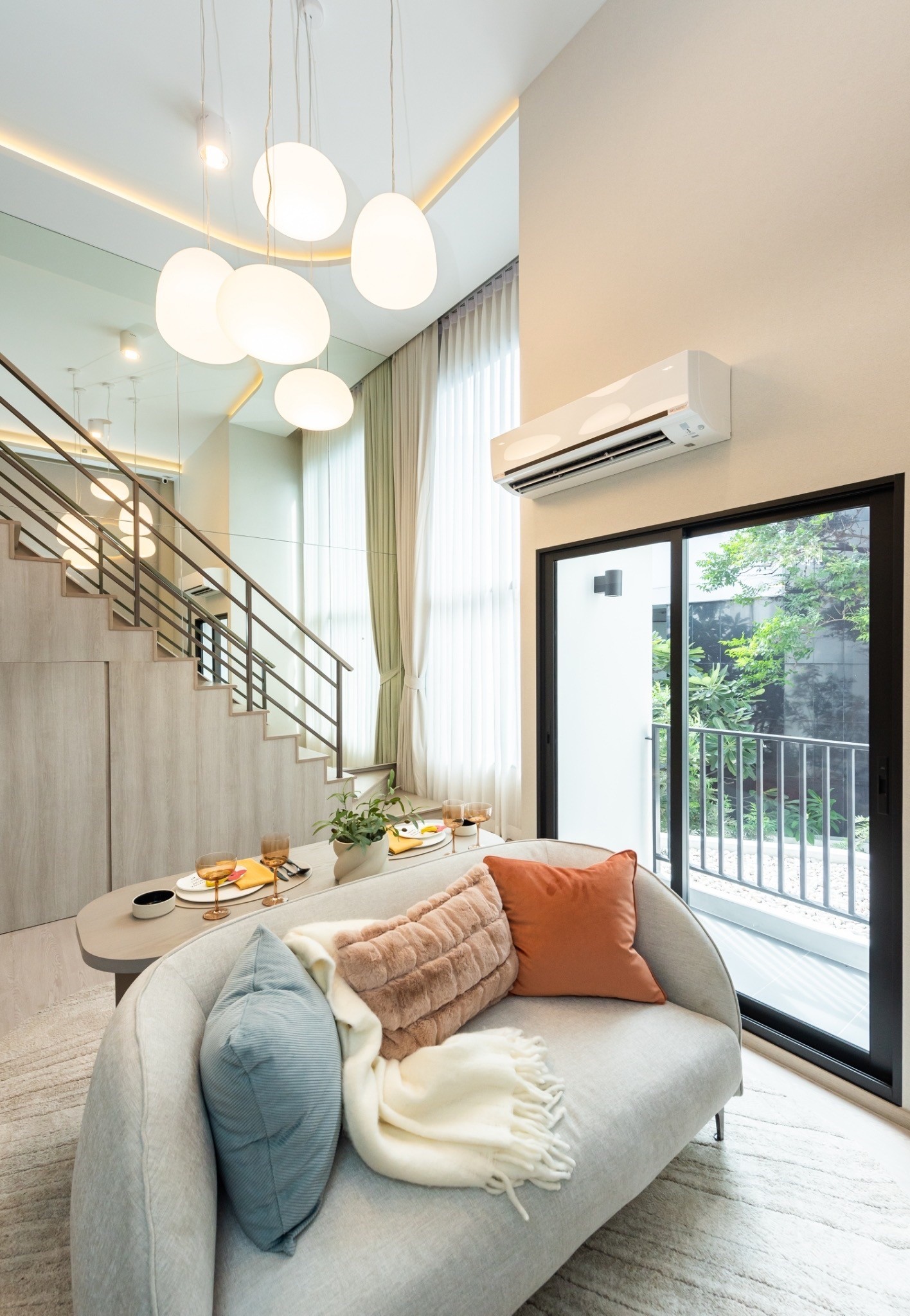 ห้องที่โดดเด่นที่สุดคือ High Ceiling Unit ที่อยู่ในชั้น 5–7 และ 20–22 มีทั้งแบบ Simplex และ Duplex เพดานสูงกว่า 4.7 เมตร ให้ความรู้สึกเหมือนอยู่อพาร์ตเมนต์หรู ในราคาคอนโดทั่วไป — นี่คือสิ่งที่ทำให้ COBE แตกต่างจากโครงการอื่นในย่านเดียวกัน